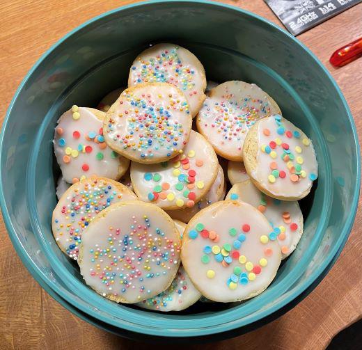 Je nach gewünschter Amerikaner-Größe mit einem Ess- oder Teelöffel einen Löffel voll Teig auf ein mit Backpapier ausgelegtes Backblech setzen. Dabei darauf achten, dass ihr genug Abstand haltet. Bei den größeren Amerikanern reicht der Teig für zehn Amerikaner. Bei den Mini-Amerikanern können es bis zu 20 werden. Die Amerikaner im vorgeheizten Backofen 12 Minuten backen. Bei den Mini-Amerikanern ist die Backzeit kürzer. Die Amerikaner sind fertig, wenn die Ränder leicht braun werden und in der Mitte noch hell sind.
