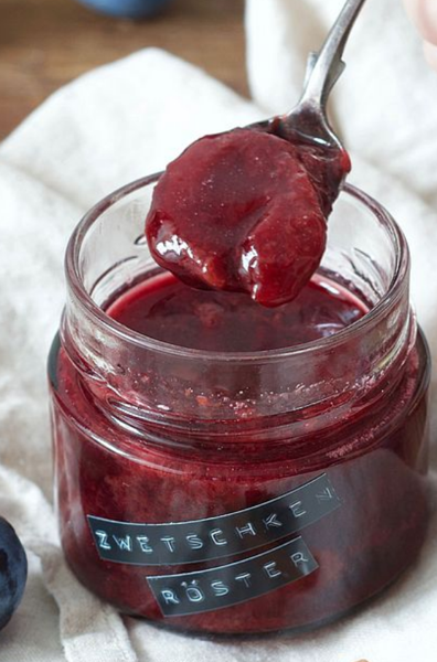 1kg Zwetschken 200g Zucker 1/2 Zitrone (Saft) 20 ml Wasser 1 Zimtrinde 1 Vanilleschote 4 Gewürznelken